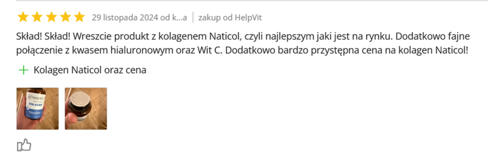 Wiąże wodę w tkankach, nawilża i "smaruje" staw od środka. Większość kolagenów na rynku go nie zawiera lub zawiera w ilościach symbolicznych.