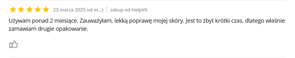 Pierwsze efekty - większy komfort ruchu, mniejsza poranna sztywność, lepsze nawilżenie skóry - są zauważalne już po pierwszym miesiącu regularnego stosowania. Jedno opakowanie to pełna kuracja próbna.